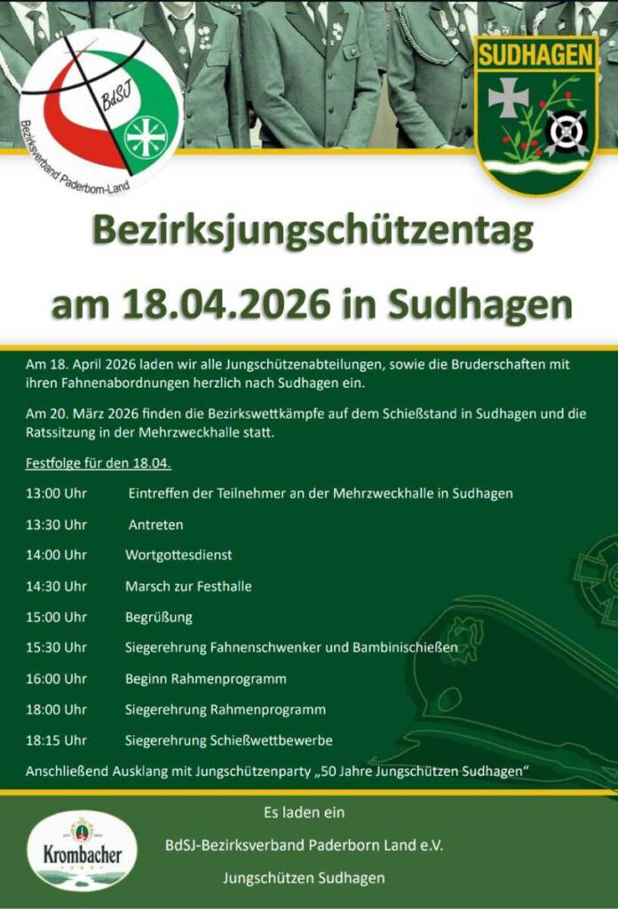 Der Bezirksjungschützentag findet am kommenden Samstag, den 18.04., bei unseren Freunden in Sudhagen statt.