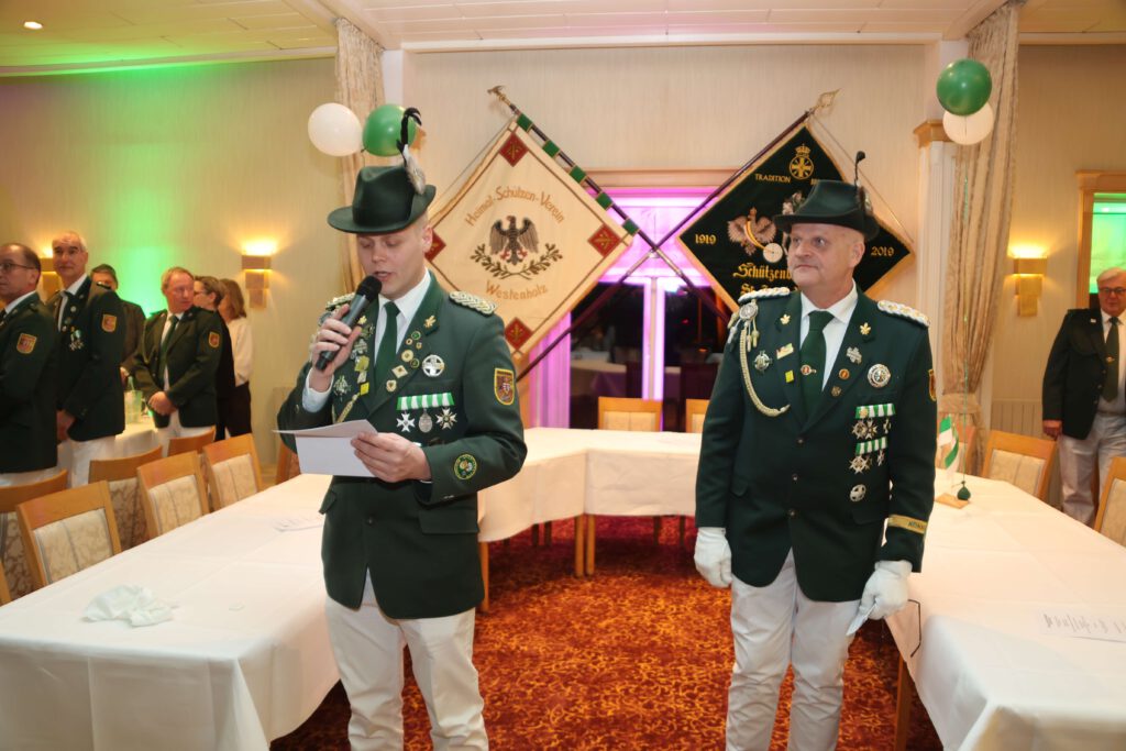 Nach der herzlichen Begrüßung durch den Vorstand freuten sich die Anwesenden besonders über den Besuch unseres Königspaares Henrik und Alica Rolf mit Hofstaat, die dem Nachmittag einen festlichen Rahmen verliehen. Ebenfalls anwesend waren das 25-jährige Jubelkönigspaar Franz und Mechthild Hagenbrock sowie Ehrenoberst Bernhard Wissing und die Ehrenbrudermeister Franz-Josef Kesselmeier und Johannes Stollmeier, die mit ihrem Erscheinen die Veranstaltung zusätzlich bereicherten.