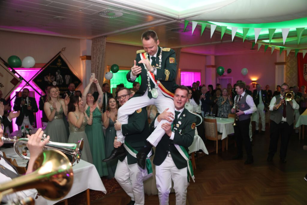 Ein besonderes Highlight des Nachmittags war der Auftritt von Hubert Meiwes alias „Bauer aus Teckentrup“, der mit zahlreichen amüsanten Geschichten aus dem Westenholzer Dorfleben für beste Unterhaltung und viele Lacher sorgte. Im Anschluss sorgte Michael Grabbe mit schwungvoller Musik für eine tolle Atmosphäre. Die Tanzrunden wurden begeistert angenommen – besonders das „Rudern“ und die Polonese, angeführt von unserem Königspaar und ihrem Hofstaat, sorgten für ausgelassene Stimmung und viel Bewegung.